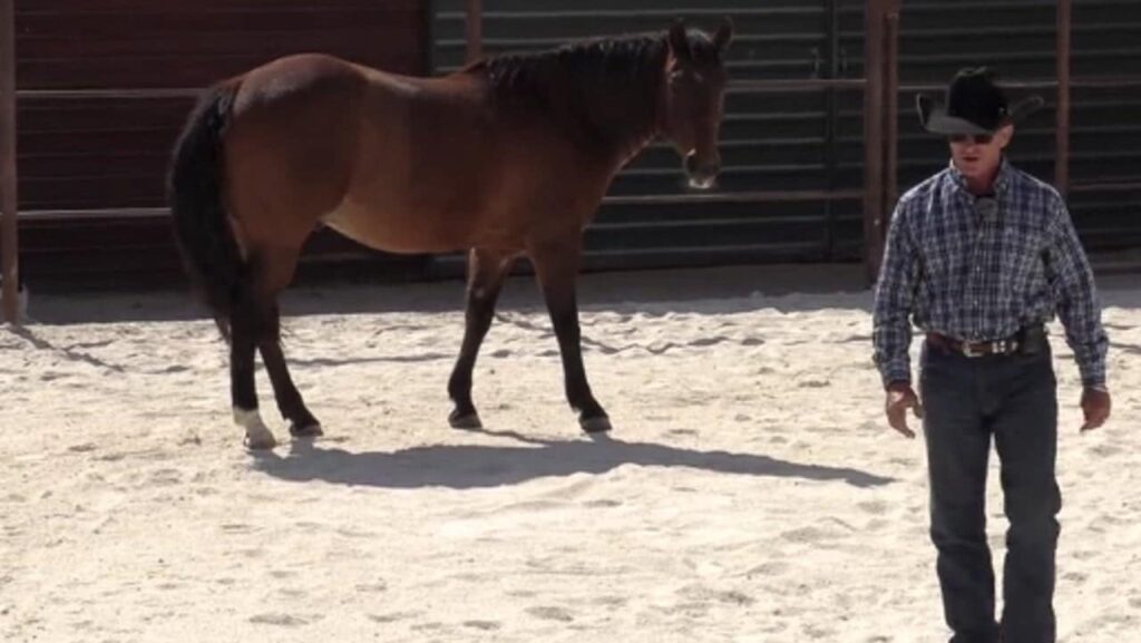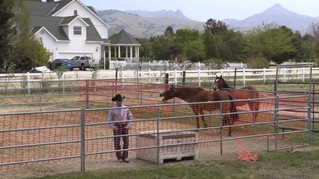 In this fourth session, Warwick continues to work with Petey in the arena while Chance is in the barn.