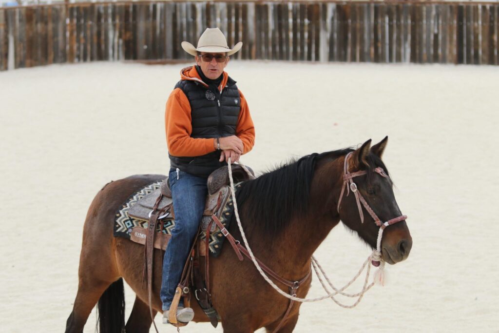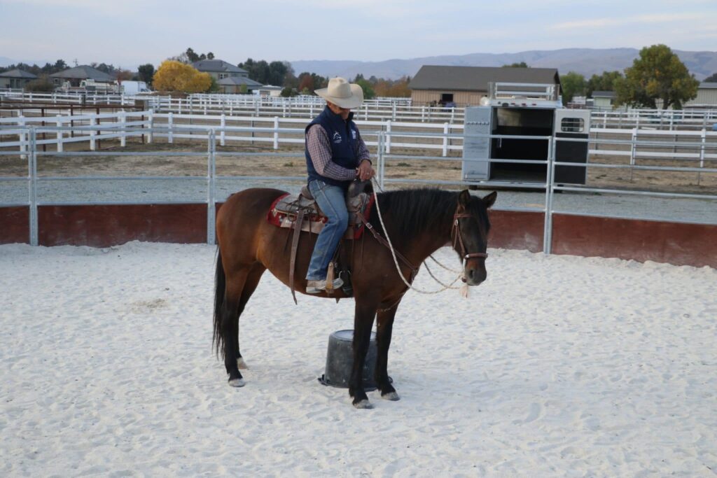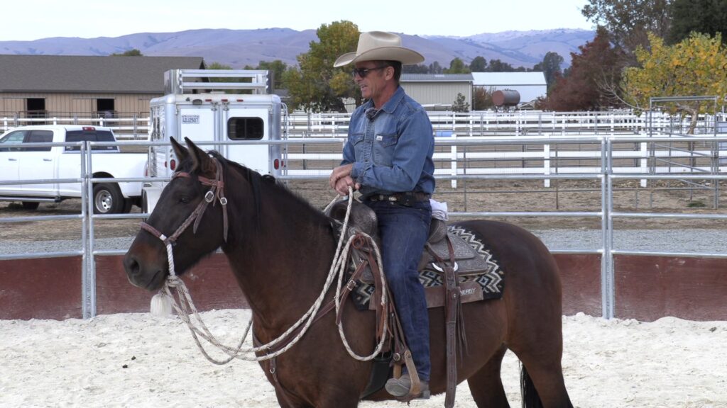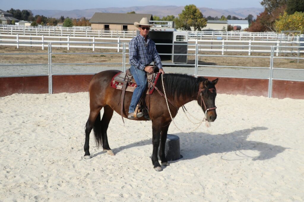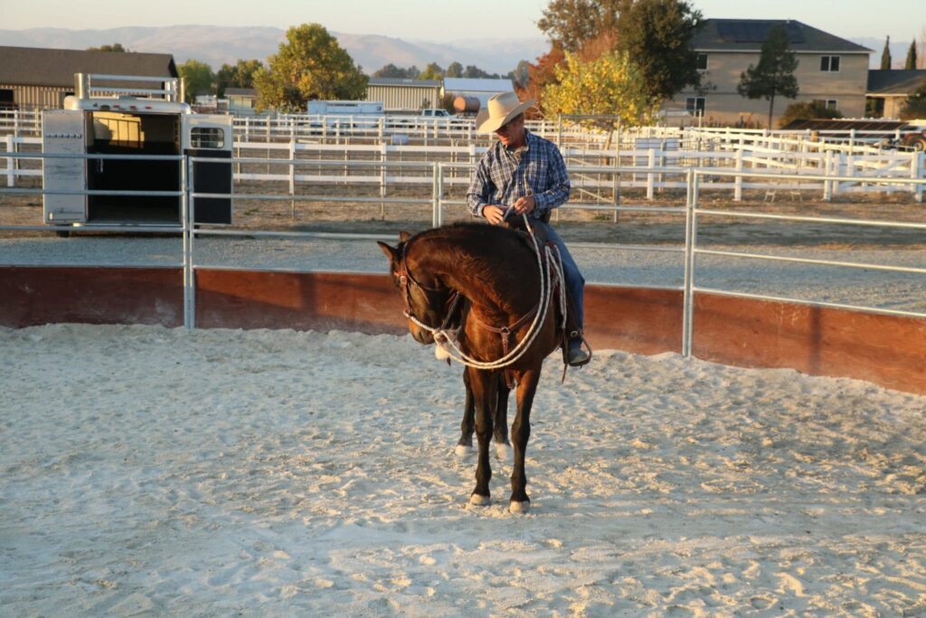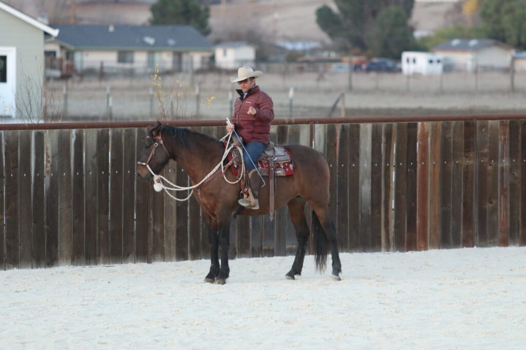 Warwick rides Dulce in the arena after a few minutes in the round pen.