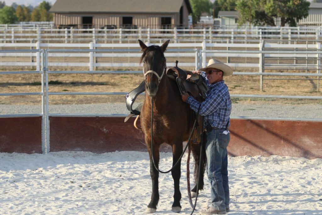 Putting the saddle on for the first time.