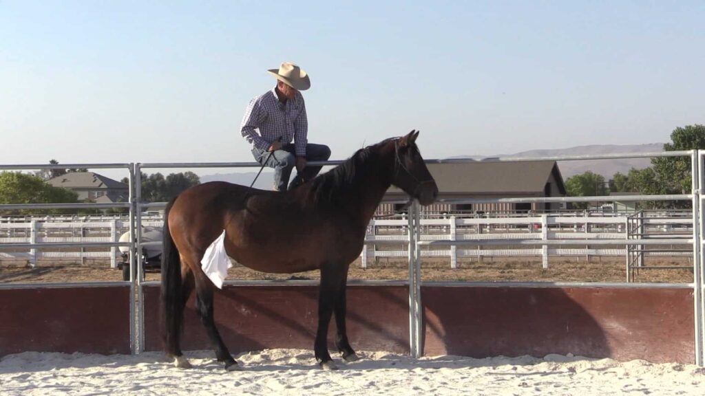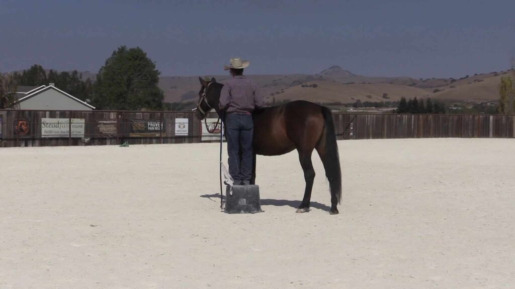Warwick works with Dulce on mounting from the fence.