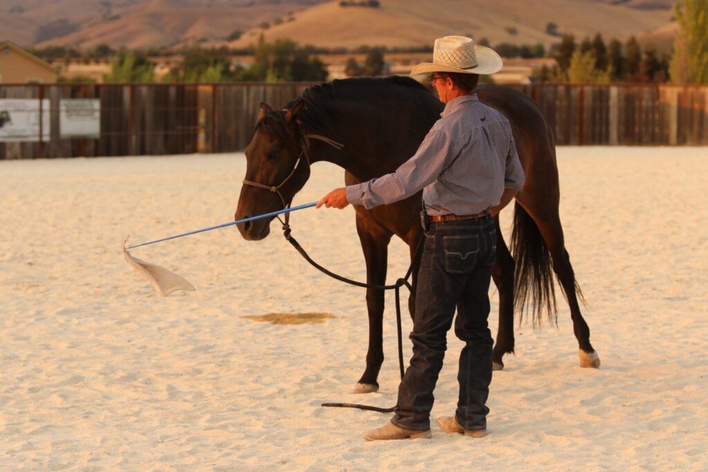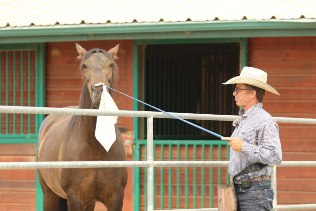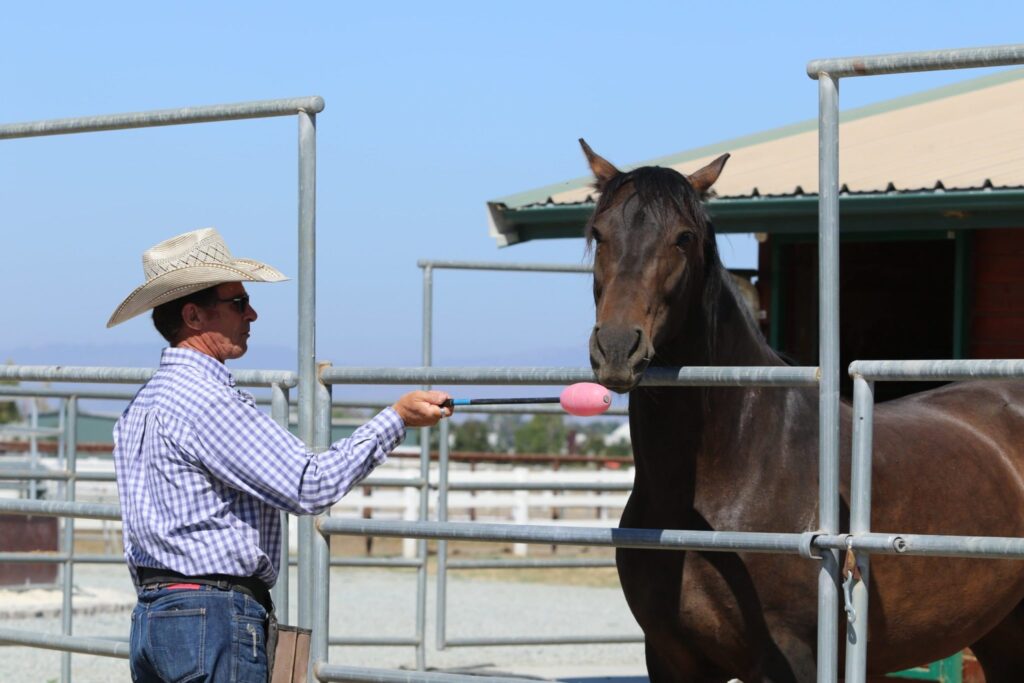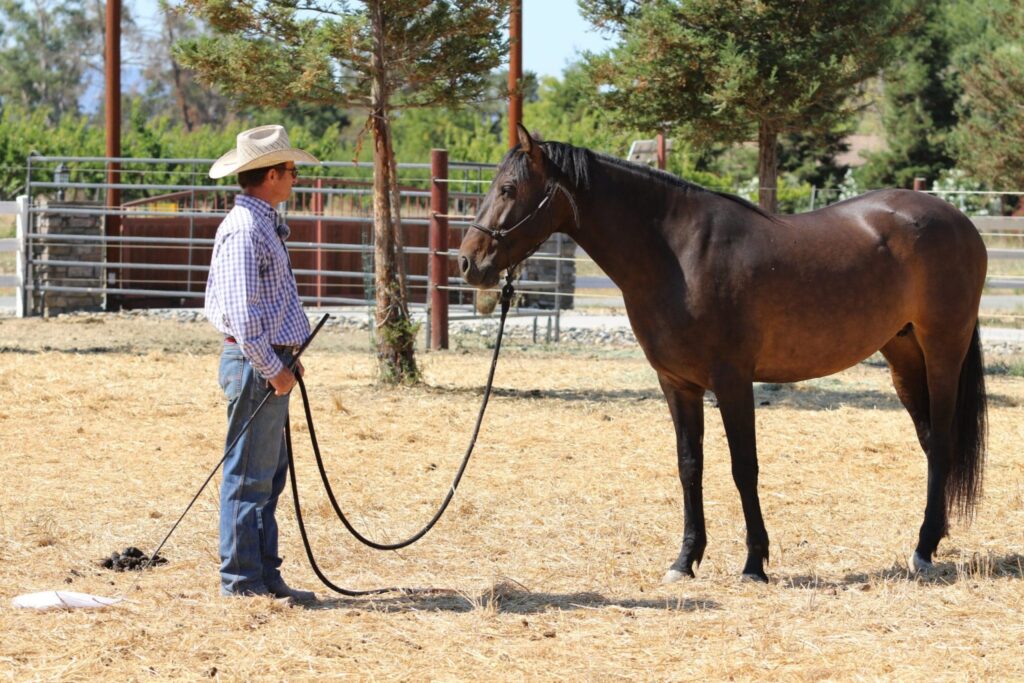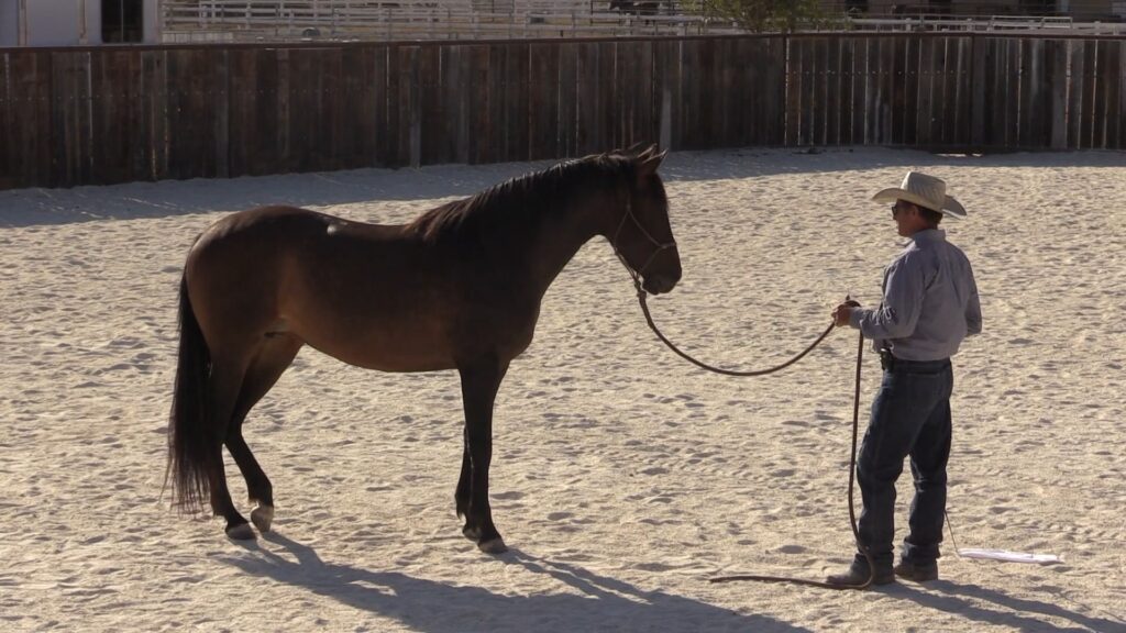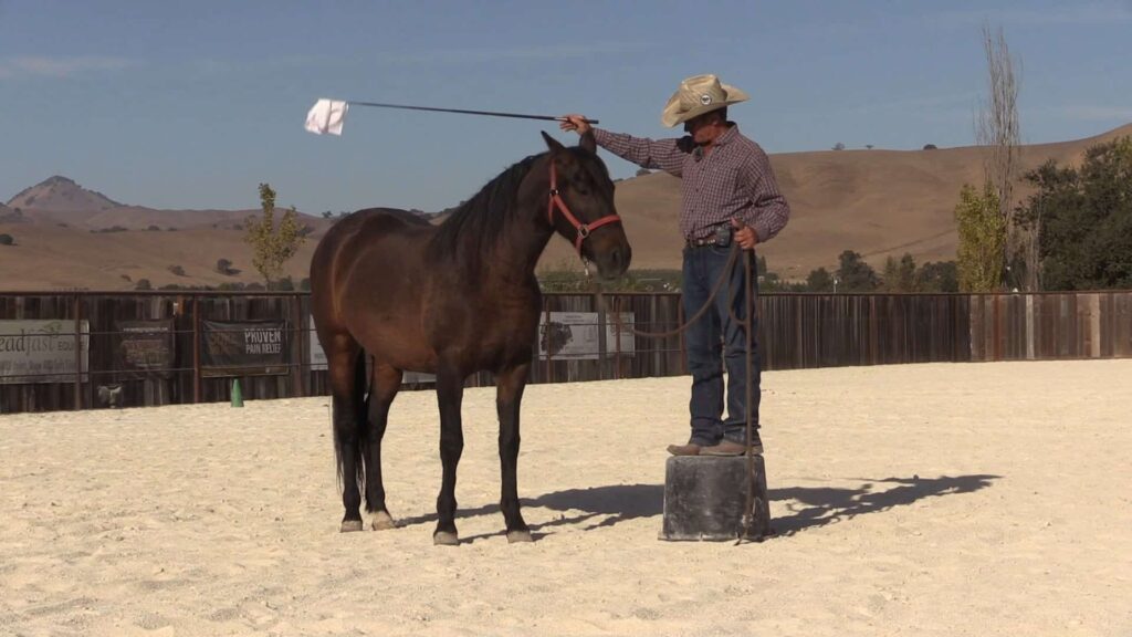 Next, Warwick works on getting Dulce to come up beside him on a bucket (think, mounting block).