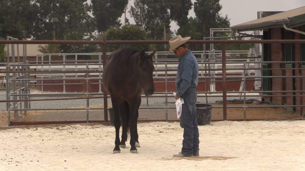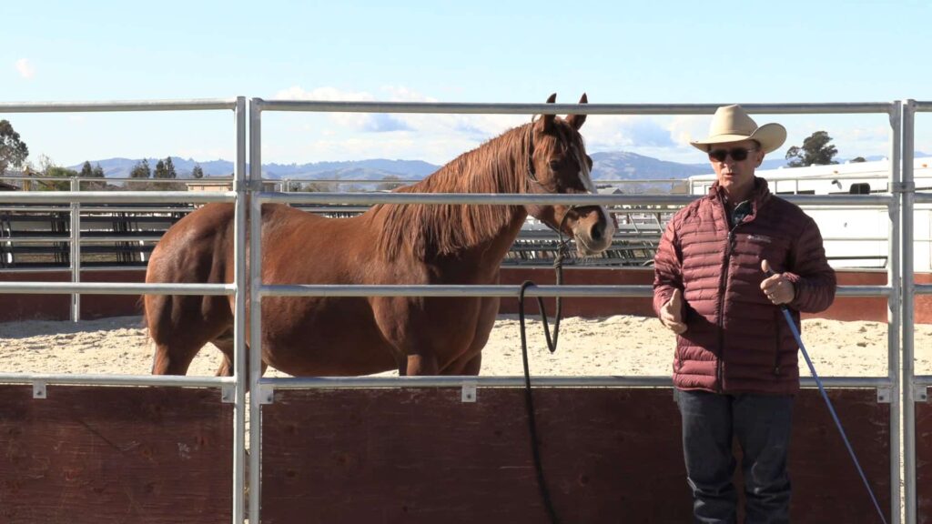 Warwick shows you how he would go about working with a pushy horse from the safety of the other side of the fence.