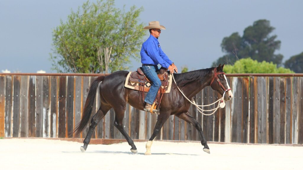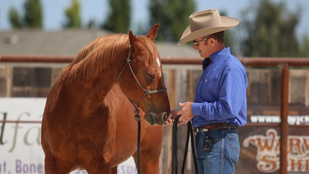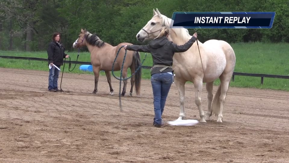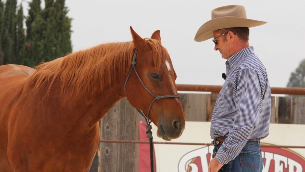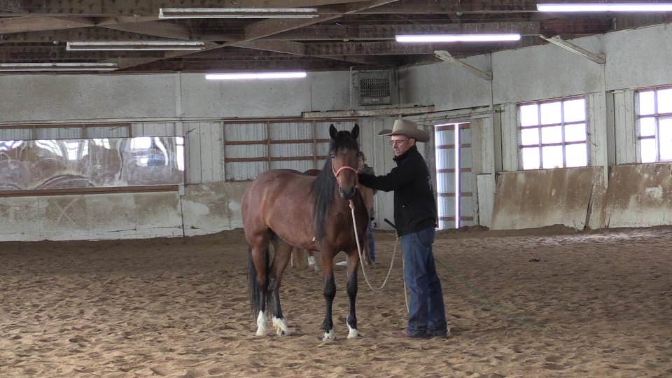 Filmed at the Western States Horse Expo, Warwick takes a distracted, anxious Warmblood and helps him relax using passive leadership.
