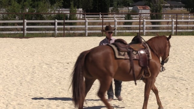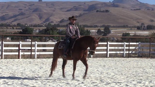 Riding Tom, a young reining horse, I show several different problems that can arise in the flying lead change, and how to remedy them. In the…
