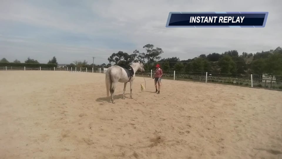 This clip is of Jenea’s sister Samantha riding her 4 year old pain Skip. All progressing well until ride 8 when he started kicking out…