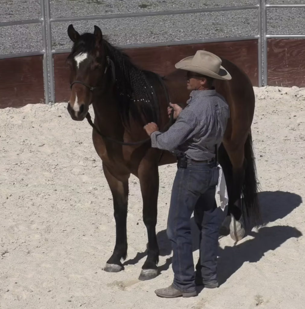 Break saddling into pieces, release on a change in focus, confirm the horse can move freely, and only saddle once each step is calm and…