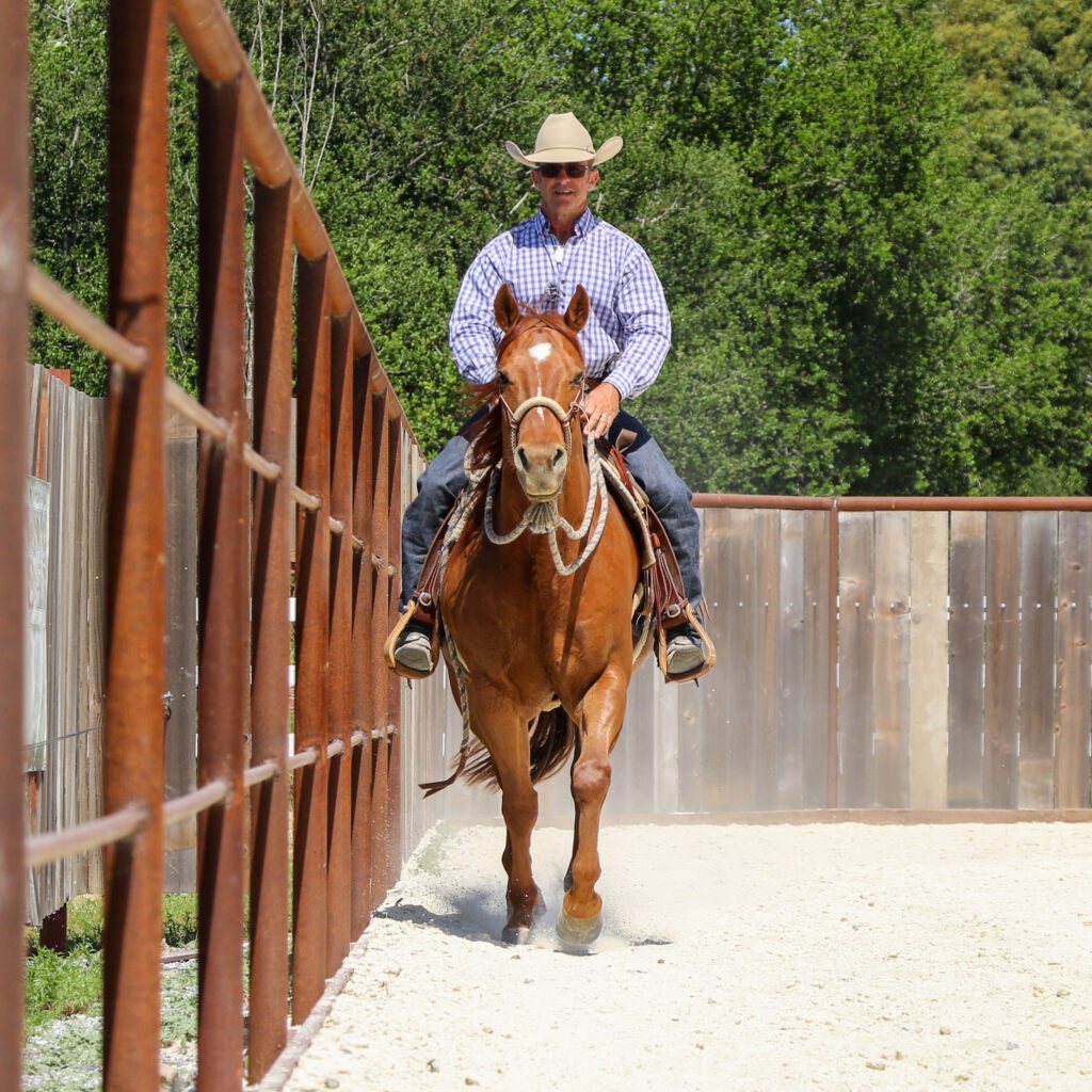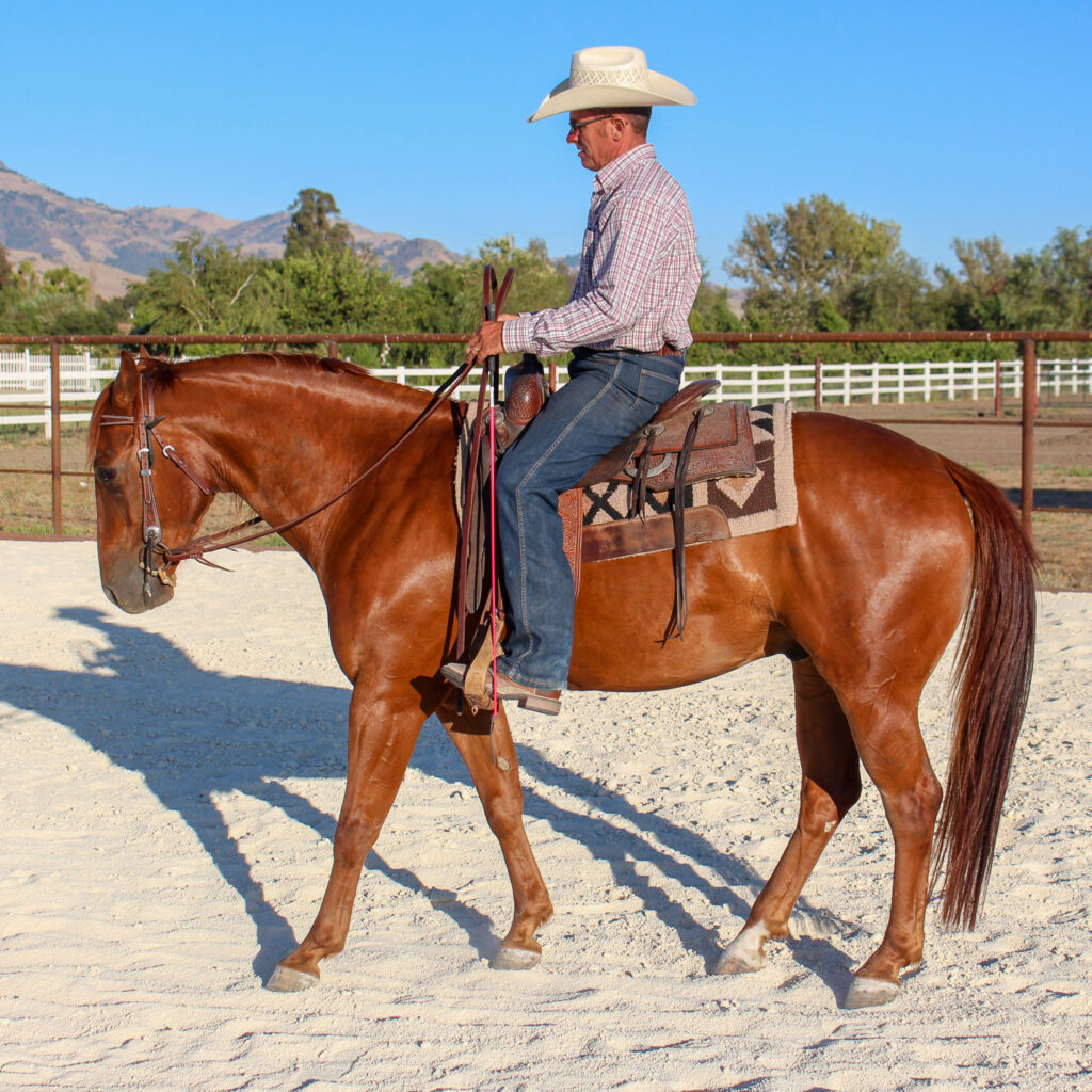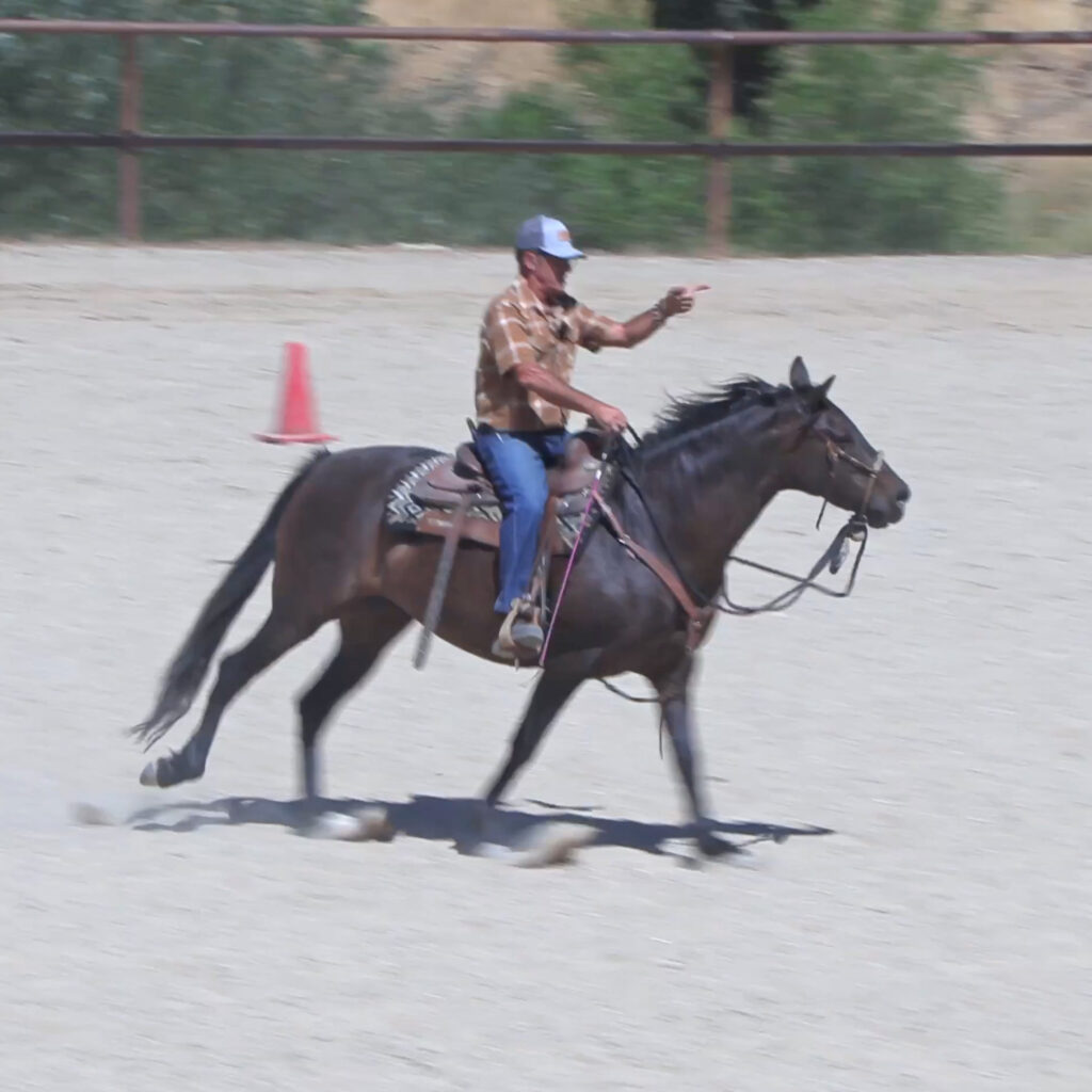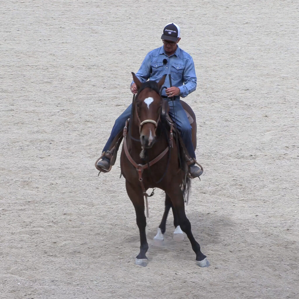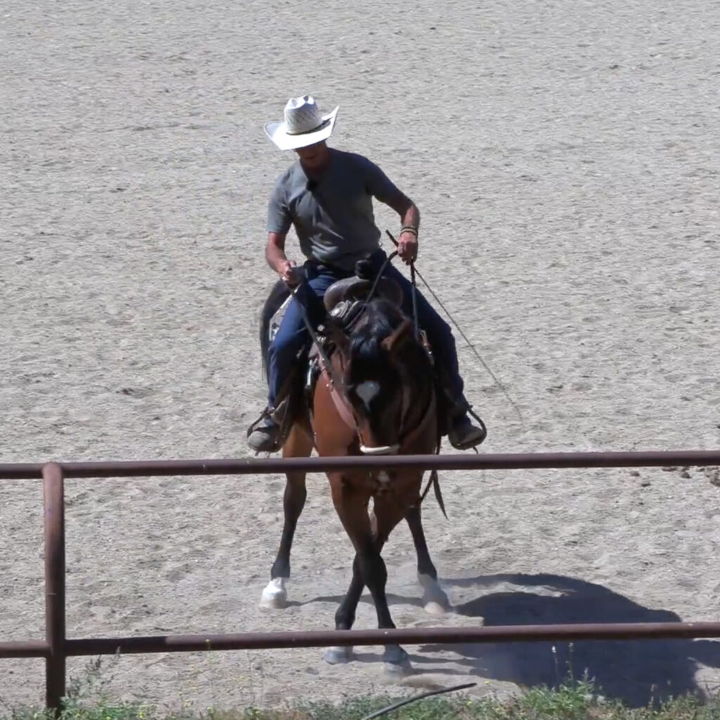 This lesson teaches the horse to rate and slow down from the rider’s body alone, without pulling on the reins or bracing through the front…