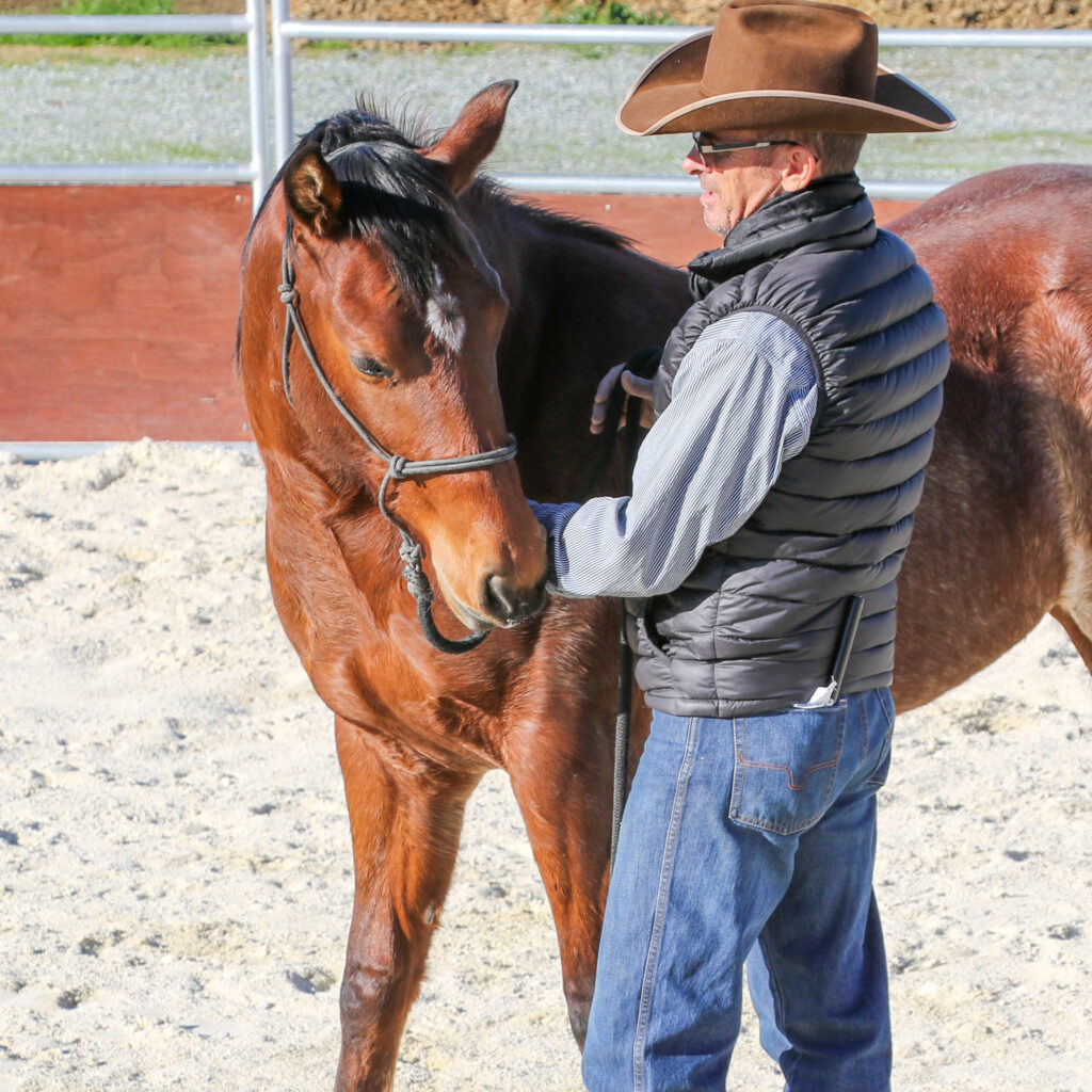 Once your horse is confident standing beside you at the fence from both sides, the next step is to practice easing into the feeling of…